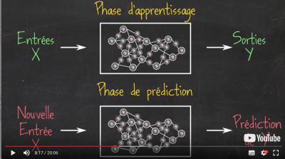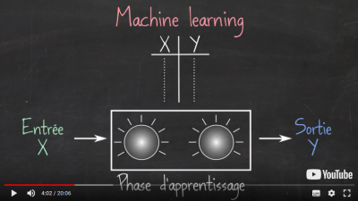 Une entrée X et une sortie Y sont présentées à un algorithme qui "tourne deux boutons a et b" jusqu'à ce qu'il ait compris le lien du type Y = aX + b entre X et Y.