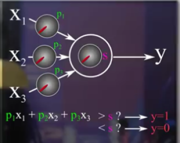 si la somme pondérée dépasse un seuil S, la réponse est 1, sinon la réponse est 0.